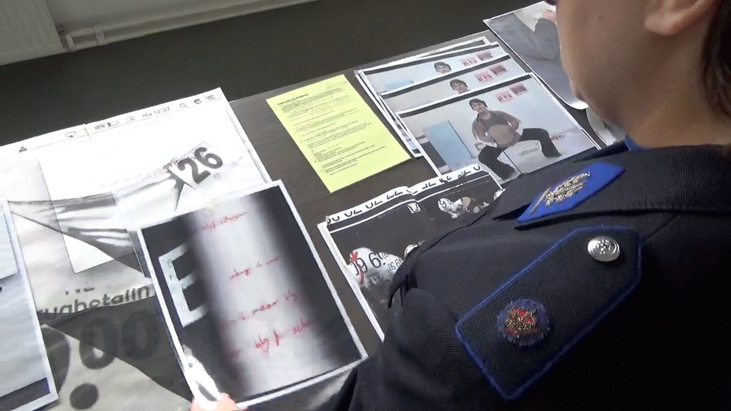 A play between and submission. That is the lens through which we might view Jivan van der Ende’s work. ‘Waakzaam en Dienstbaar’ (Vigilant and Dutiful) takes its title from the Dutch police motto and builds on Jivan van der Ende’s collaboration with graphic designer Elena Op ’t Eynde in her role as De Politieman (The Policeman).